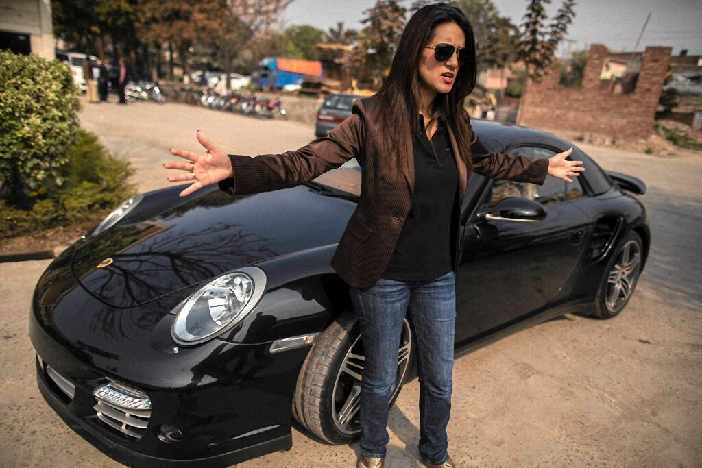 1. Ansa Hasan — женщина-руководитель. Она возглавляет отдел маркетинга известной во всем мире фирмы «Porsche» в Пакистане. На фото: Ansa перед фирменным салоном автомобилей Porsche в Лахоре. (Фото: ZOHRA BENSEMRA).