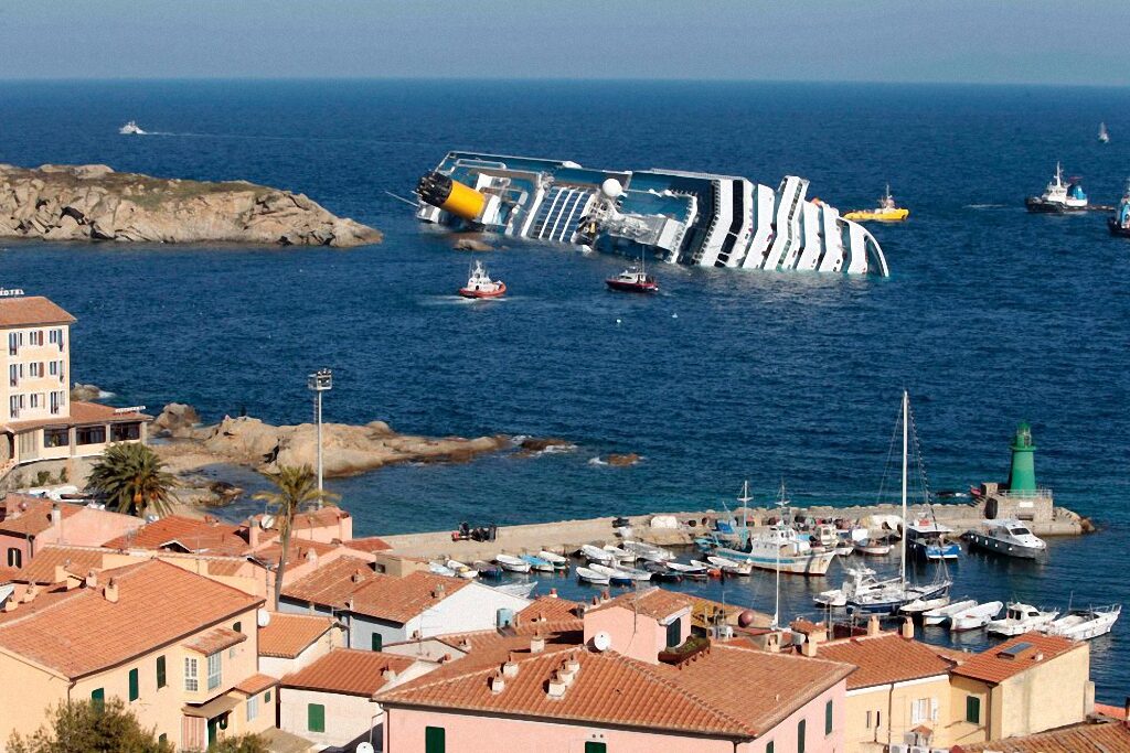 1. Коста Конкордия — это самое большое пассажирское судно, которое потерпело крушение. 13 января 2013 года лайнер наскочил на риф, получил пробоину и начал тонуть у берегов итальянского острова Джильо.