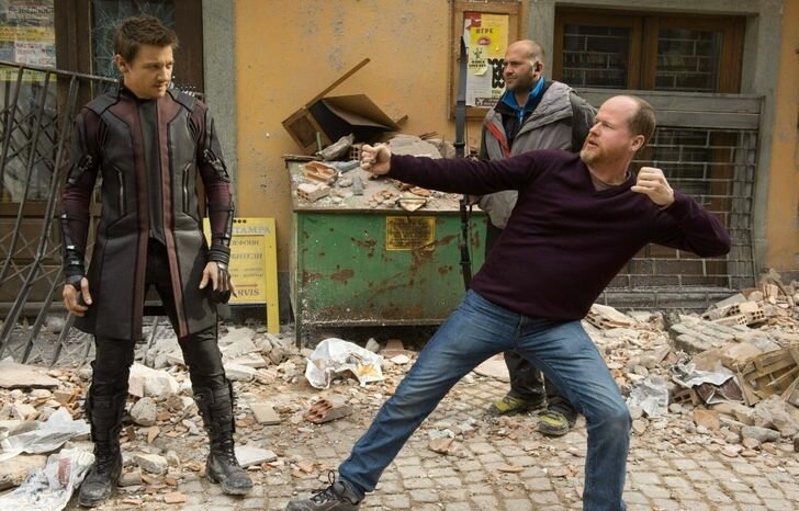 11. Джосс Уидон, режиссер «Мстителей: Эра Альтрона», показывает Джереми Реннеру, как стрелять из лука.