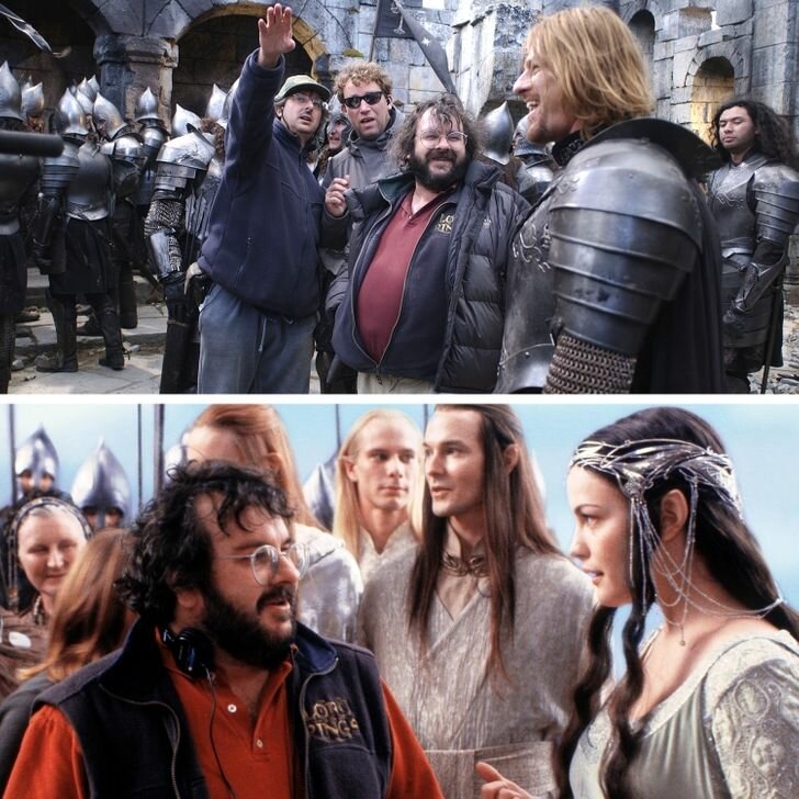 15. Питер Джексон с актерами на съемках фильма «Властелин колец».