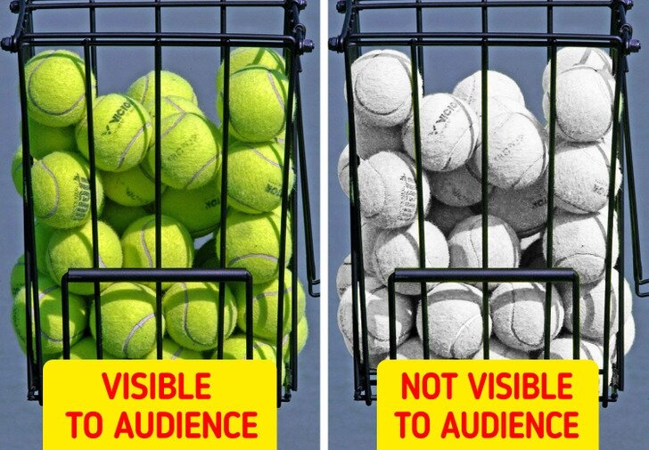 4. Почему теннисные мячи желтые? Теннисный мяч претерпел эволюцию цветов. До того, как они приобрели желтый неоновый цвет, шары были либо белыми, либо черными. Но проблема заключалась в том, что на экране телевизора было сложно разглядеть мяч. В итоге спортивное сообщество решило сделать все мячи желтыми, чтобы их было видно зрителям.
