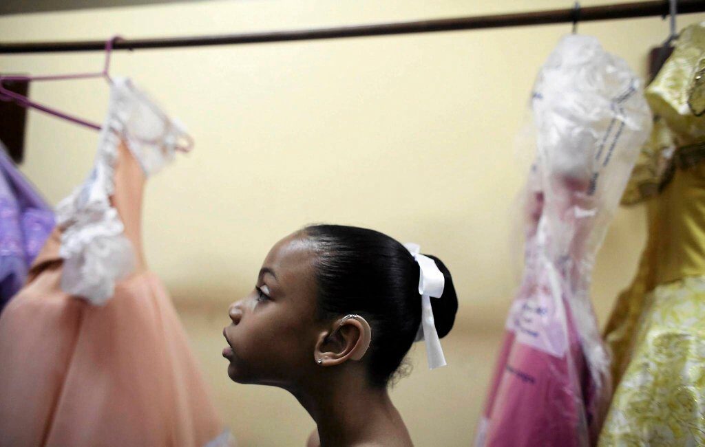 8. Маленькая слепая балерина Мария тренируется перед началом своего выступления по случаю Дня защиты детей в Бразилии. (Фото: NACHO DOCE/REUTERS).