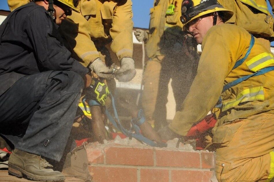 4. К счастью, кто-то из соседей услышал её отчаянные крики о помощи и вызвал спасателей. Прибывшие на место проишествия пожарные демонтировали часть дымохода, и во время вытаскивания бедолаги использовали жидкость для мытья посуды. (Фото: AJ/Ventura County Fire Department).