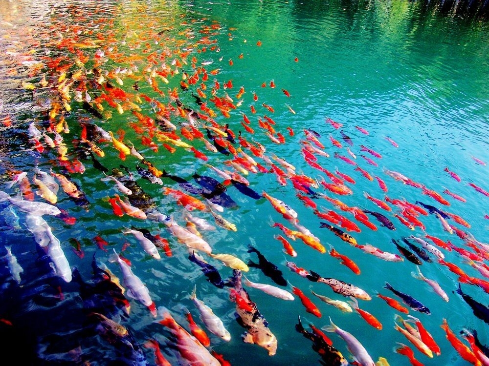 Карпы в пруду.
