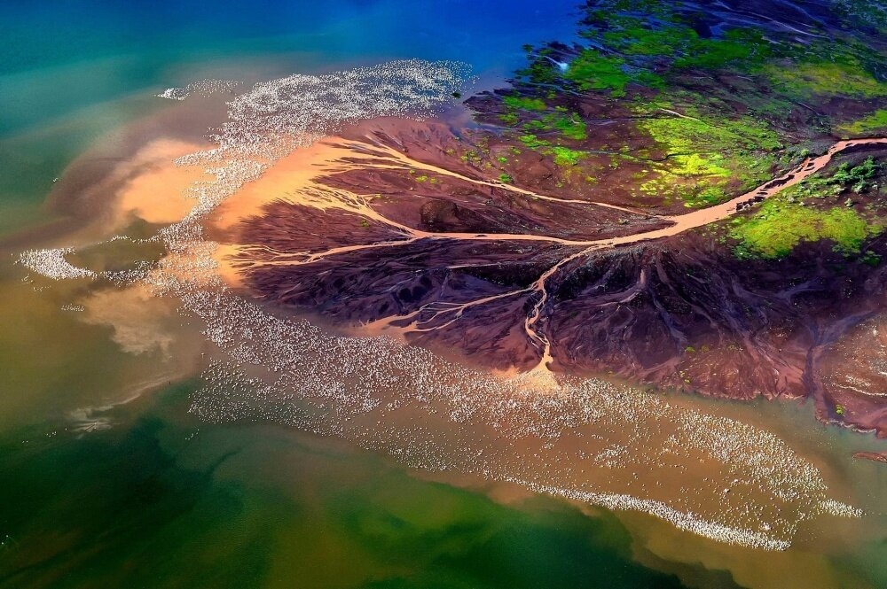 Озеро Богория в Кении, излюбленное место фламинго.