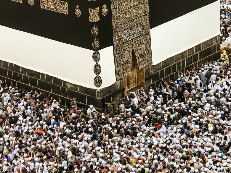 9. Мусульманские паломники обходят Каабу и молятся в Великой мечети.