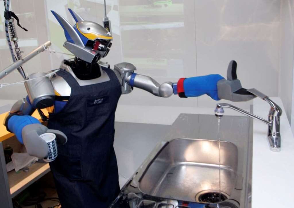 11. Робот-гуманоид HRP-2 моет посуду во время демонстрации в Токийском Университете. (Фото: REUTERS/Kim Kyung-Hoon).