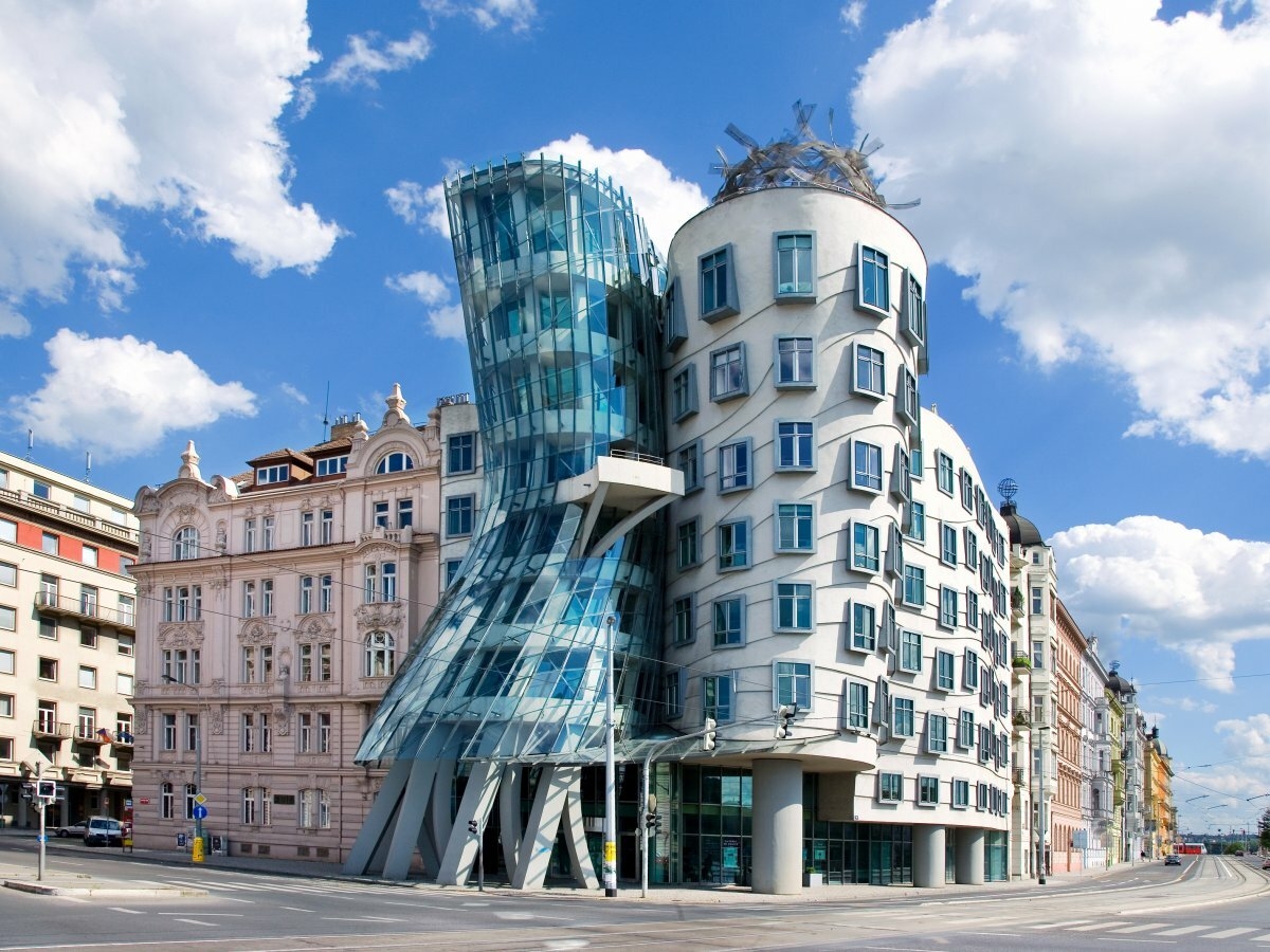 3. Танцующий дом в Праге спроектированный Фрэнком Гери и Владо Милуничем в 1996 году.