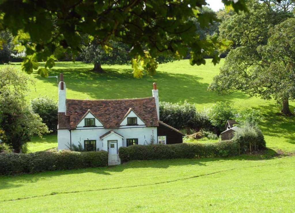 Затерянный в зелени лугов и многочисленных деревьев дом в центральной Англии.